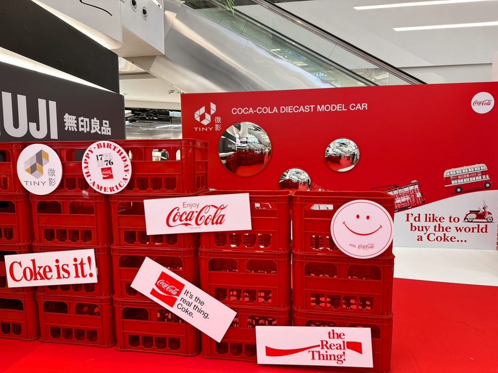 同時,場內亦設置多個限定打卡位,包括於商場G/F大堂以可口可樂造型登場的Mini Cooper(「Tiny 城市合金車仔 – Mini Cooper 重機可口可樂」商品的1:1版本),及位於中庭的Y2K凸透鏡打卡位和重現承載著香港人70年代回憶的「美樂士多」,當中以懷舊汽水、零食玩意及歴史舊物等營造昔日美好香港情懷,穿梭於70年代的時光迴廊,帶給大家歡樂及延續美好回憶!