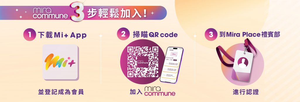 - 迎新獎賞只適用於2026年4月20日至2026年5月17日登記及啟動其Mira Commune會藉之會員,須於Mira Place 禮賓部或於登記攤位認證,方可獲贈迎新獎賞。